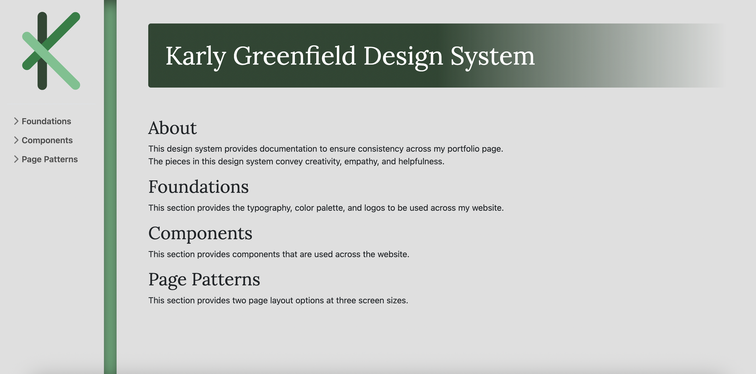 Using HTML and CSS, I designed and coded this design system for my final project in Design Fundamentals 2 at DePaul University. The design system includes fundamentals, components, and page patterns.